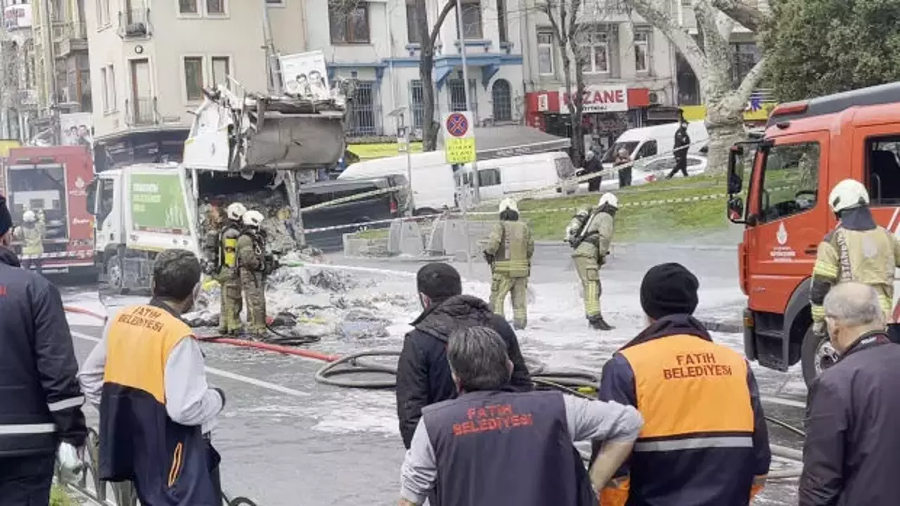 İstanbul'un Fatih ilçesinde çöp kamyonunda henüz bilinmeyen nedenle patlama meydana geldi.