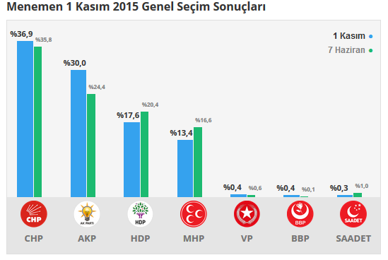 Menemen 1 KASIM – 7 HAZİRAN 2015 Seçim sonuçları