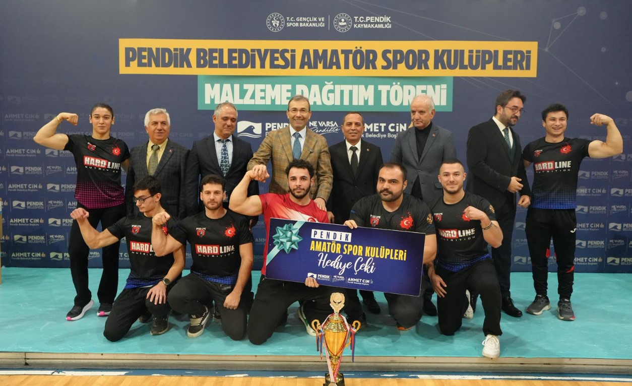 Pendik Belediyesi, geleneksel “Spor Malzemesi Dağıtım Töreni” Şehit Burhan Öner Spor Kompleksi’nde yoğun katılımla düzenlendi. Kaymakam Mehmet Yıldız, Pendik Amatör Spor Kulüpleri Başkanları, yöneticiler, sporcular ve antrenörlerin katıldığı törende, toplamda 60 amatör spor kulübüne spor malzemeleri teslim edildi. Ayrıca, Pendik’te faaliyet gösteren spor kulüplerinin ulusal ve uluslararası organizasyonlarda derece elde eden sporcuları ile antrenörleri de unutulmadı. Pendik’i farklı branşlarda temsil eden sporcu ve antrenörlere ödülleri takdim edildi. Başarılı isimler, ödüllerini Pendik Belediye Başkanı Ahmet Cin ve Pendik Kaymakamı Mehmet Yıldız’ın elinden aldı.