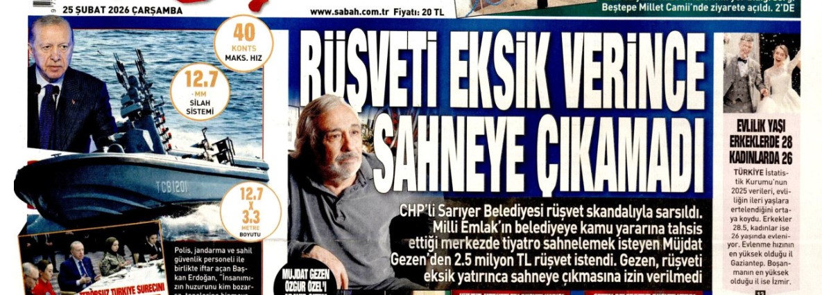 Rüşveti eksik verince sahneye çıkamadı: 25 Şubat 2026 Çarşamba güncel gazete manşetleri