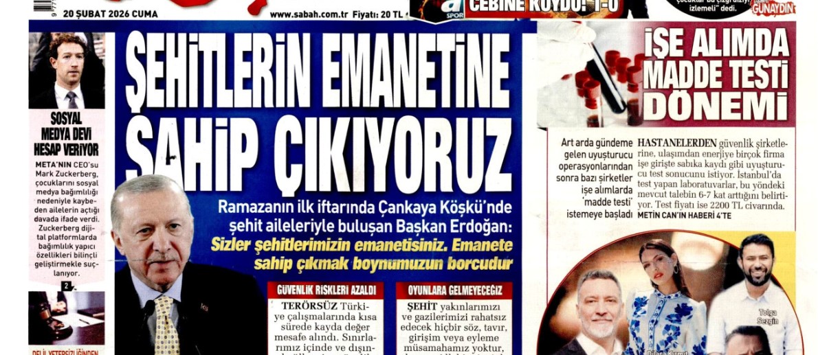 Şehitlerin emanetine sahip çıkıyoruz: 20 Şubat 2026 Cuma güncel gazete manşetleri