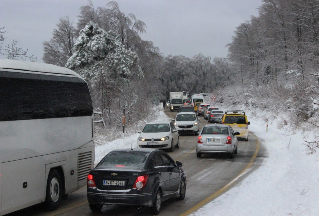 Uludağ'da etkili olan kar yağışı nedeniyle yollar kapandı. Hafta sonu tatili için Uludağ'ı tercih eden tatilciler kilometrelerce kuyruk oluşturdu. Kar kalınlığının 63 santimetreye ulaştığı Uludağ'da jandarma ekipleri araçlarına zincir takmayan sürücüleri geri çevirdi